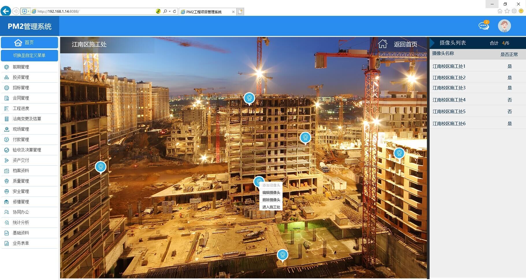 ◆ 支持多校区、多项目、多维度的高清摄像头现场监控。