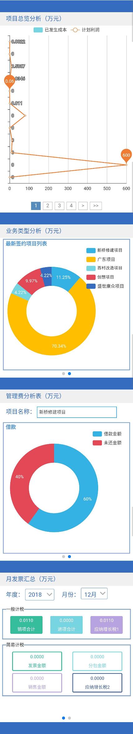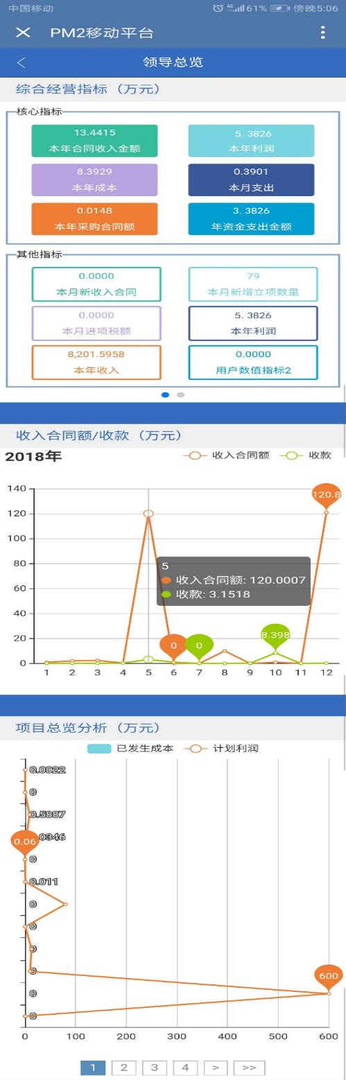 本文给大家介绍PM2移动应用中的领导总揽部分,通过各种直观的分析图表展示企业日常经营的各种数据,方便各级领导和相关部门随时随地掌握公司的经营数据。
