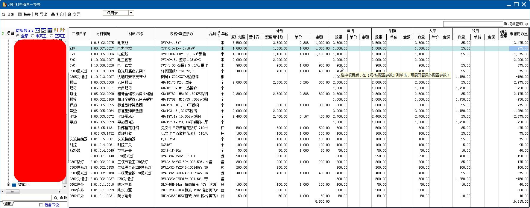 ◆ 任务材料计划(从项目清单拆分明细生成)