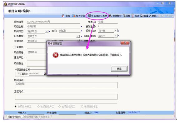 Q3:如下提示没有关联协同办公目录 A3:创建好表单后没有绑定流程或我的表单目录