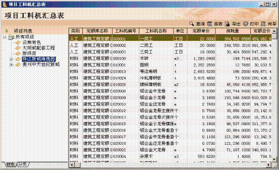 (4)工料机、主材、费用、工程量等预算数据的统计分析。